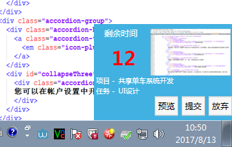 当工时通客户端截图并准备发送到服务器时,会弹出一个倒计时提醒。用户可以选择提交,放弃,或预览。