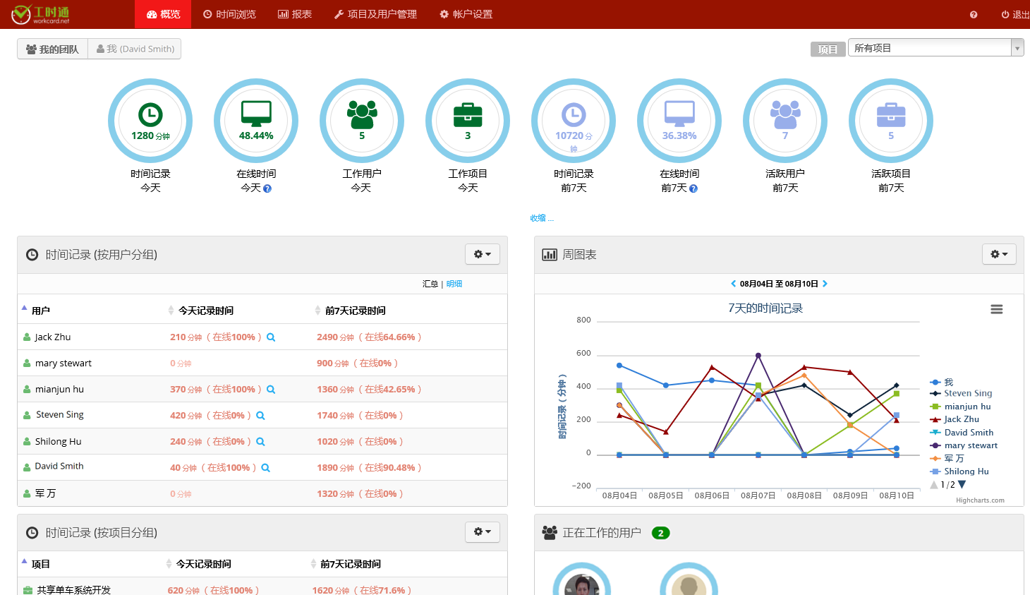 工时通能提供可视化的工时记录,帮助团队更好的协作,让团队知道谁在做什么事情。